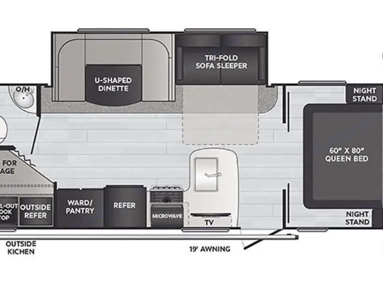 Super Light (AND Super FUN)Impeccable condition, 30ft Travel Trailer with a Queen size bedroom (with doors :)) and a very comfy bunk bed for the younger ones. Dinette and sofa convert into beds as well. Drive and park with ease (No special license required). Includes everything you need - board games, linens, cooking utensils, eating utensils, coffee maker, toaster.We are also looking to rent out our beautiful RV long term in the winter months. For those of you who may be wanting to take a trip down South to escape the winter months and looking to do so more affordably, contact us to discuss pricing.The Passport SL travel series is known as the swiss army knife of RVs for its multi-functional features and best-in-class storage, it is super light weighing only 5,760 lbs (dry weight). The floorplan offers everything —tons of storage, including a rear cargo door with a flip-up bunk to store perhaps a kayak, paddle board, a couple of bikes or so much more. It also features a new murphy bed design which reveals a sofa when not in use, a very comfortable sofa I might add :).Here are the specs: