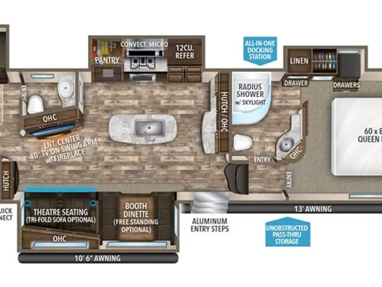 it comes equipped with dishes,silverware and linens What's includedComes with linens,pots&pans,dishes and towelsRecommendationsI have taken this 5th wheel from Key West to SD
