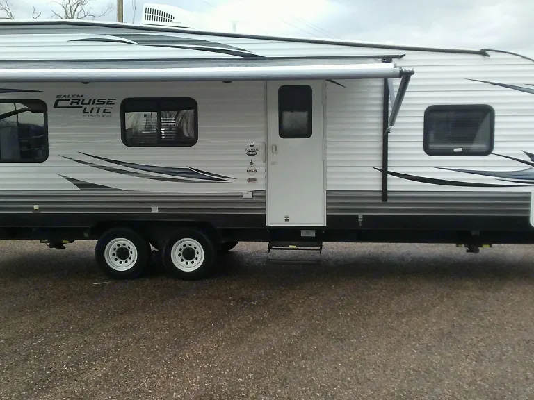 Fully Loaded! Private bedroom with queen bed, queen drop down bed and jack knife sofa. will sleep 5-6 comfortably. Full bathroom with shower, 31in TV DVD/CD player and radio. Full size BBQ Grill and propane generator if needed. 3 burner stove, oven, microwave, fridge. 2 indoor rocking chairs so you can open the back and enjoy the great outdoors. Has screen wall and outdoor shower. All cooking pans and utensils as well as plates cups and silverware are included! Corn hole boards and camping chairs also available upon request. This coach come fully loaded and 2 full propane tanks included! all you need to bring is sheets, towels and food. Your family will have the best outdoor memories ever!