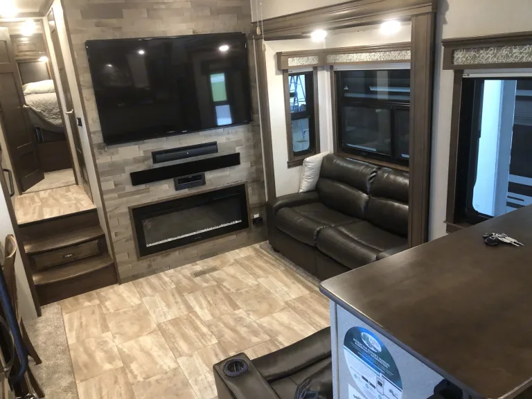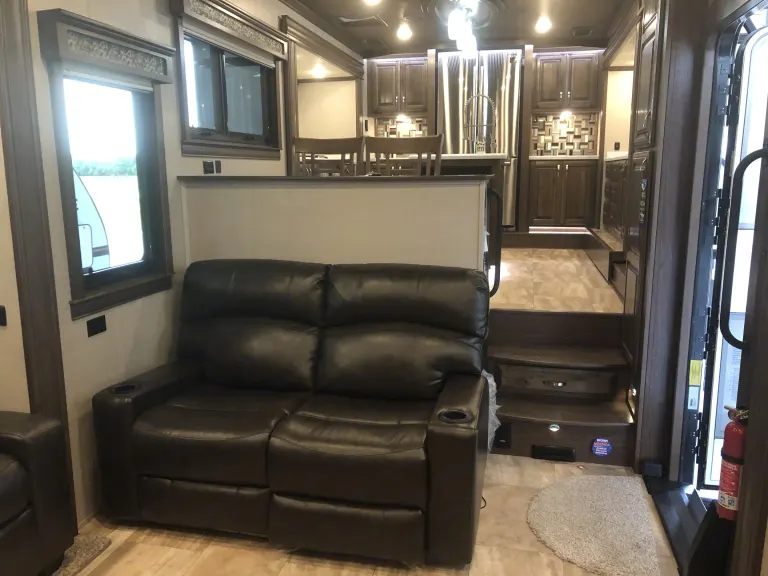 Very well built Luxury 5th Wheel Toy Hauler for smaller toys or nice size motorcycle. Unit has all options like solar system, power inverter system, free Satellite TV from Dish Network, WiFi extender system, Massive 65 inch TV, large residential refrigerator, outside refrigerator, 3.5 inch insulated walls for super quite and efficient cooling/heating. 1 AC will keep this unit cool in Phoenix, AZ at 120 degrees F outside; 4000 watt propane generator, instant hot water heater system, theater power recliners, office desk, very large kitchen and so much more.360 camera is installed on the 5th wheel for easy backing up.I offer delivery and setup for additional fee within 300 miles of 85354.If you plan to pull this, you must have prior knowledge of a 5th wheel and a 1 ton dually truck or larger with 5th wheel hitch capable of 18KRates