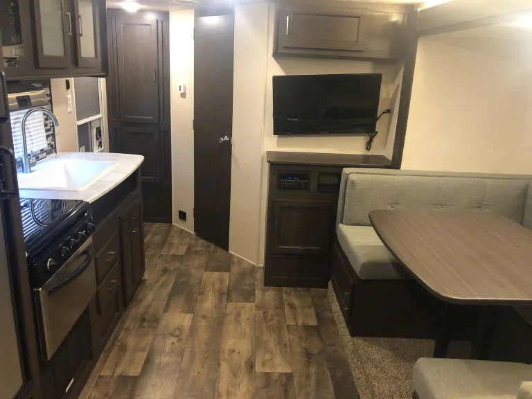 Our camp trailer can accommodate 3 adults or a family of 4-5 with smaller kiddos in this nicely appointed travel trailer. With a tv, radio and cold air conditioning Awning, outdoor lights and stabilizers are on a remote making it easy to set up and start your adventure. A generator is included with 4 hours use per day. The stove runs on the trailers propane and you can be cooking outdoors in minutes using the connection on the side of camper. 2 inch Equalizer Hitch provided for comfortable towing. Available 2.5 inch adapter for larger rigs. No Smoking. No festivals.What's includedGenerator and a five gallon gas can both will be full. Basic kitchenware upon request. A fitted bed sheet will be supplied for both beds as well. We are no longer offering pillows sheets or blankets for sleeping. Please bring at least two sets of full size sheets, any blankets and pillows that you would like to use. Other things to noteCleaning fee. $250.00