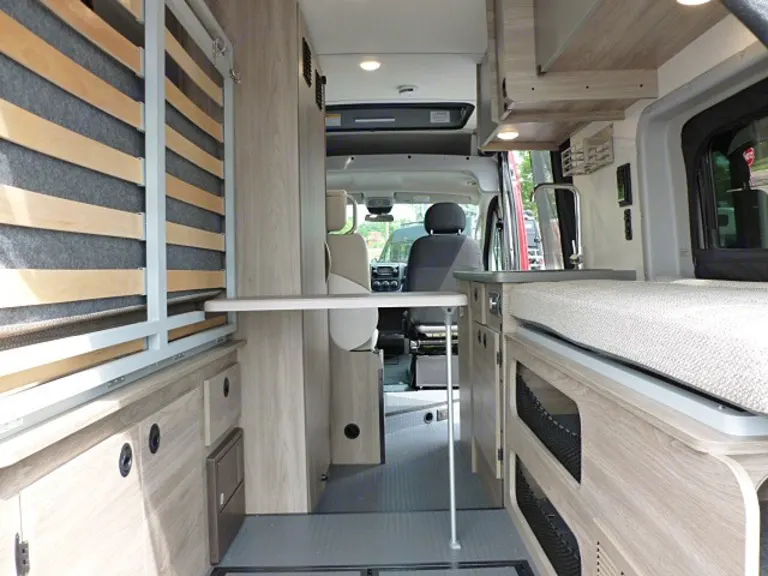 The new Solis sits and sleeps 4 comfortably. It’s a very versatile, feature-packed all-season "adventure-chaser" for everyone from weekend warriors, to full-time van lifers, to active families. The pop-up Solis packs in a load of features, including a folding Murphy bed/workstation, standard solar charging, multipurpose rear annex, and all-season "surf-to-slope" livability and loads of storage and USB plugs!Super easy to drive, (just like a mini van) great turning radius, and very comfortable for those long drives.The kitchen is the perfect layout with dual-burner stove, indoor/outdoor-access compressor fridge, sink and slide-out kitchen worktop.The wet bath has an easy to use cassette toilet and fully contained shower.The Solis does not have an AC but does come equipped with a fantastic fan with good window placement for a cross breeze. It also has side and rear screens to keep the bugs out but the views open!What's includedThe Solis comes with: