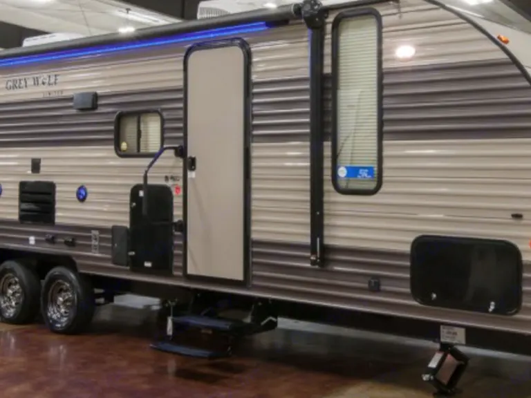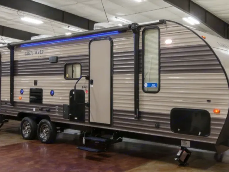 Rate Includes campsite!!FOR Questions Call: Lindsay @ 2017 Grey Wolf 26FT Double Bunk House This is the perfect family bunkhouse that will sleep up 6 comfortably but is rated for up to 9. It's loaded with storage including the multiple exterior compartments, cabinets, huge pantry, seamless countertops, wardrobes and more! This bunkhouse floorplan features rear double bed bunks, a rear bathroom with entry door, super slide out, spacious "U" dinette, front queen bed, bedroom cabinets & sliding privacy doors, AM/FM/CD/DVD/Bluetooth stereo, TV, exterior marine grade speakers, Rigid exterior LED light, power tongue jack, mini outside kitchen, 4 stabilizer jacks, tire pressure monitors, folding rear cargo rack, 13,500 BTU AC, power awning with integral LED lighting, interior LED accent lighting, interior LED lighting, dual exterior hot/cold showers.How it works: Camp like a rockstar in this 2017 Limited Edition RV. You arrive to a completely set up camper at the beautiful Riverstone Campground in Townsend TN!! All you have to do is have a good time. We will even have the outdoor space ready for you to relax- complete with 4 deluxe camping chairs and an outdoor rug! We provide a full service camping experience. Campsite includes full hookups, cable and wifi. Call Lindsay for details (865)803-3577Please note: reservations are first come, first serve. A reservation is not complete until payment is rendered.