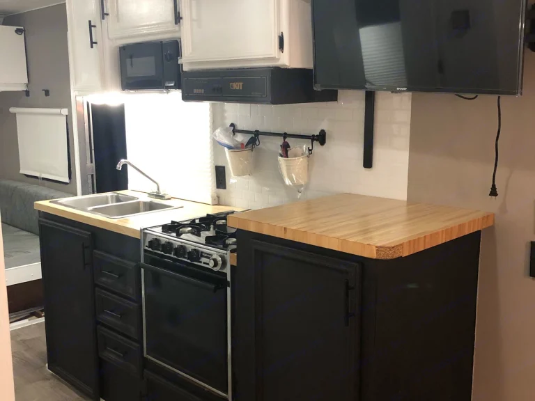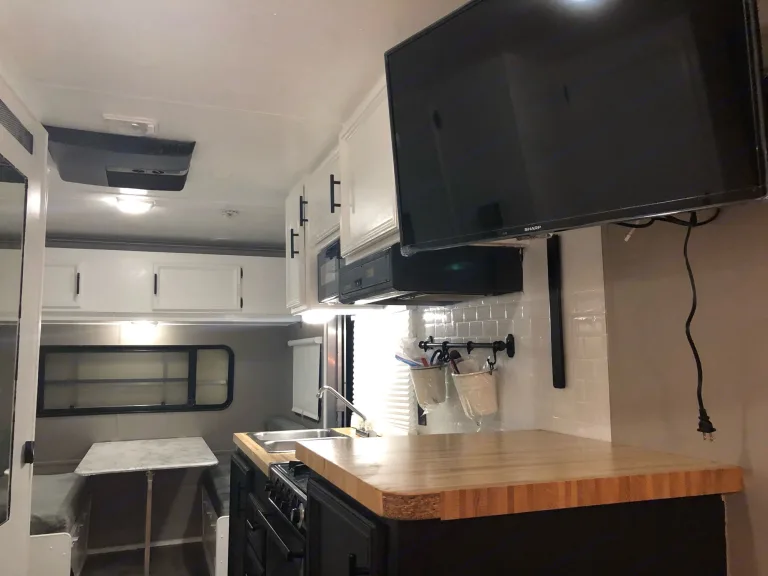 Our family style travel trailer has been fully renovated to give you a Modern Vibe and luxury experience.