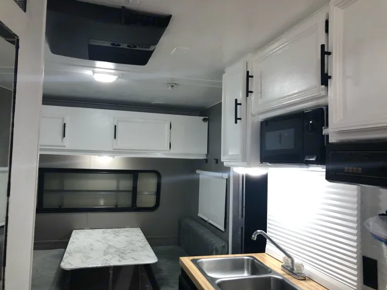 Giving you a comfortable stay with following amenities: dining table/area, indoor shower/toilet, outdoor shower, sinks, microwave, stove/oven, fridge & freezer, ample amount of cabinet space, A/C & heater.