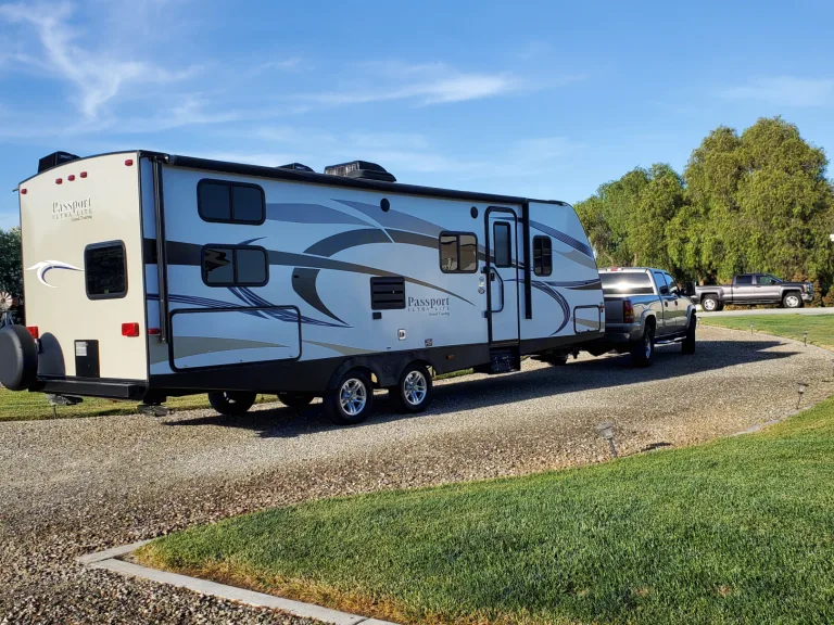 Your vehicle must be rated to tow the weight of this trailer which is 5,274 LBS unloaded, plus payload capacity of 1,726 LBS, Gvwr 7,000 LBS, hitch weight 624 LBS, and must have Trailer Break Control. If you show up in a vehicle not rated to tow this weight, we will not let you take the trailer. We will supply the Weight Distribution Hitch & Anti-Sway BarsHolding Tanks