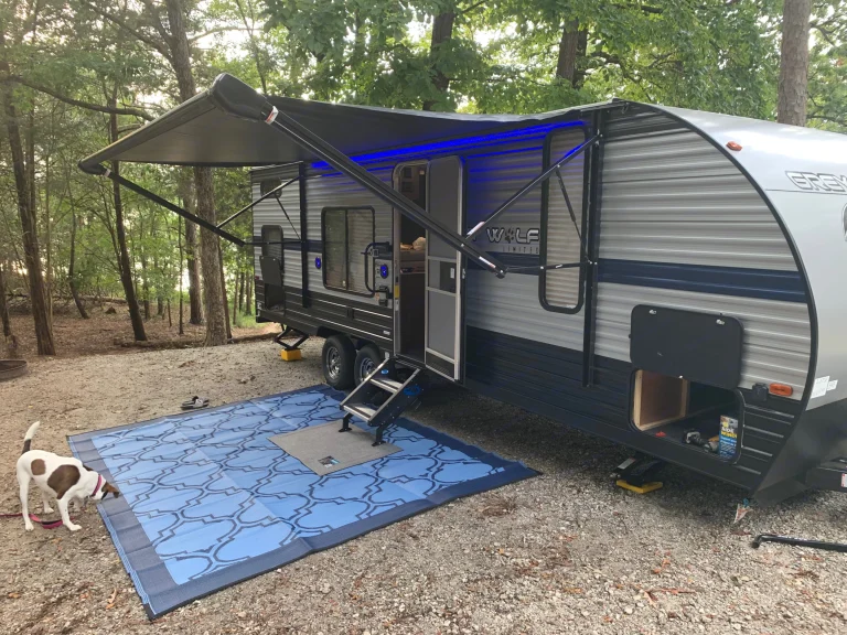 Our 30ft travel trailer was bought brand-new with love to enjoy the outdoors and bring family's together! In our camper you will find two double bunks in the back (almost the size of a queen bed) with the bathroom to the right and a queen size bed for the master up front, in the middle of the camper we have a very large window nestled directly beside our booth style dinning area which is across from the fully stocked kitchen with a wonderful deep farmhouse sink (rare find for a camper)! Outside you can sit under our state of the art push button awning with wonderful blue led lights for an awesome ambiance at night time, on the other side of the camper you will also find an outdoor shower.