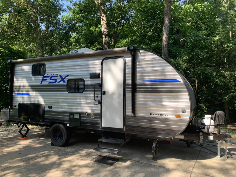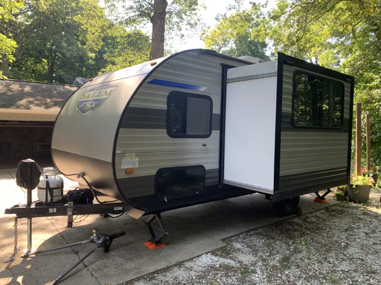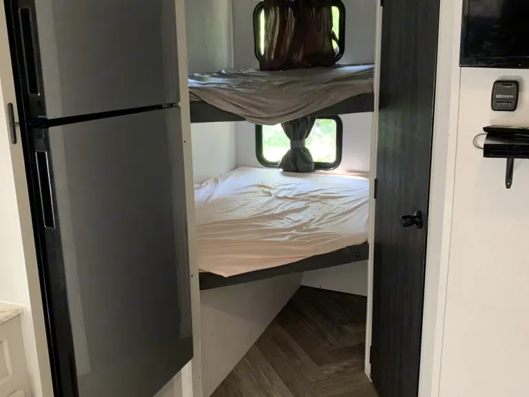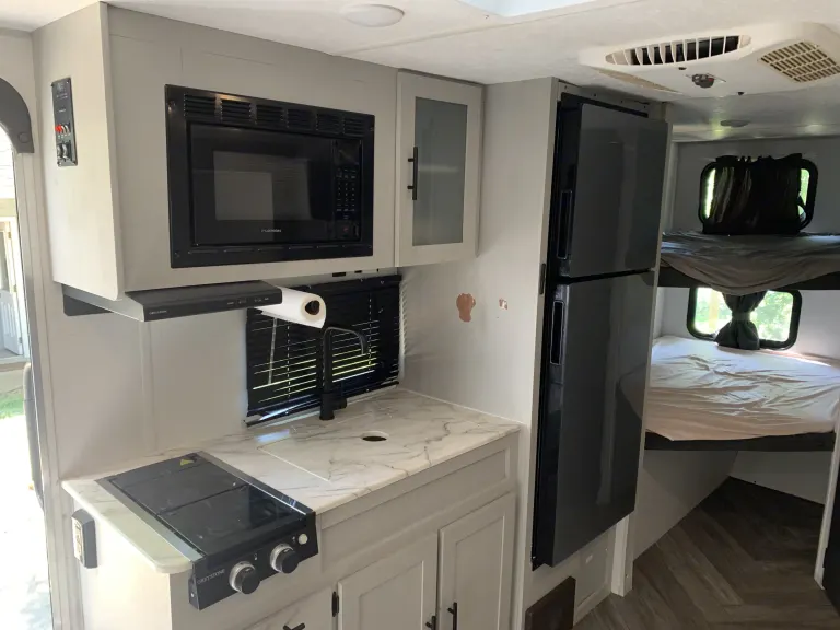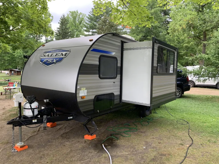 Embark on your next camping adventure with our 2021 Forest River Salem FSX 178Bhsk, a lightweight, modern travel trailer perfect for families or groups! This spacious yet compact RV (22.92 ft) sleeps up to 8 people making it ideal for growing families, longing to create memories in the great outdoors.Features & AmenitiesCozy Sleeping Arrangements: Queen-size murphy bed, double bunk beds, and a convertible U-shaped dinette to accommodate your whole crew. If you camping party is adults we'd recommend no more than 5. Our family of 6 sleeps very comfortably (my wife and I plus our four kids who are 12 and under).Fully Equipped Kitchen: Full-size refrigerator, microwave, stovetop, coffee maker and sink for easy meal prep, plus included cookware and utensils.Modern Bathroom: Rear bathroom with shower, toilet, and sink for convenience on the road. Ourdoor shower for convenience.Outdoor Fun: 12-foot power awning with LED lighting for relaxing evenings, plus outdoor griddle for sunrise breakfast or evening burgers.Climate Control: Air conditioning and heating to keep you comfortable in any season.Lightweight & Easy to Tow: Dry weight of ~3,749 lbs, towable with large SUVs or trucks. We have a high-quality weight distribution stabilizer hitch that connects to a 2" receiver. We've towed comfortably with a Lexus GX470.Why Choose Our RV?Like-New Condition: Meticulously maintained 2021 model, cleaned and sanitized before every rentalFlexible Options make it perfect for local adventures. Delivery and setup available within 50 miles of Tremont for a fee - ask for details! Waste tank dumping also available if not available at site.Great for Families: Spacious layout with bunks (double over double), convertable table (full), murphy bed (queen). The slide-out creates extra space making moving about easy.Requirements: Valid driver’s license, tow vehicle with appropriate hitch (2" receiver, 7-pin connector), electronic brake controller and refundable security deposit.Book Your Adventure!Whether you're planning a weekend getaway or an extended road trip, our Salem FSX 178Bhsk is your home away from home. Book now to experience the comfort and convenience of this family-friendly RV in the heart of Illinois’ outdoor playground. Contact us with any questions—we’re here to make your trip unforgettable!What's included• All standard equipment (water, electric, sewer, hitch)