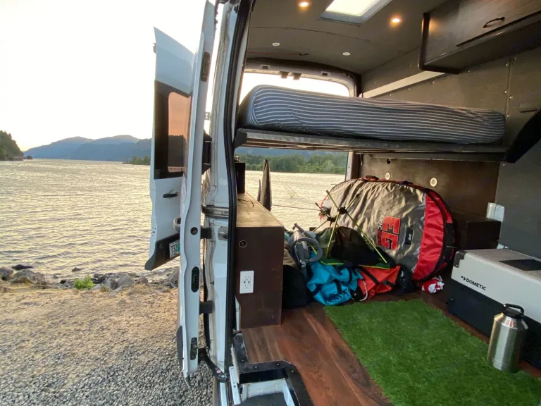 The best sleep Ever! Brand new Queen Size memory foam bed! Charge your devices with Solar Power! Light dimmers to set the mood, stargazing out of the Star Gazing Dome! The ultimate adventure Sprinter van that is modular and ready to take on the Pacific Northwest, both in campgrounds and deep backwoods. Van camping is a breeze with a queen size bed and a refrigerator, 3 light zones, a garage for your toys, kite gear, bike gear, bicycles or surf boards. Check us out on Instagram @Lets_Takethevan.What's includedSuper comfortable memory foam Queen bed!
