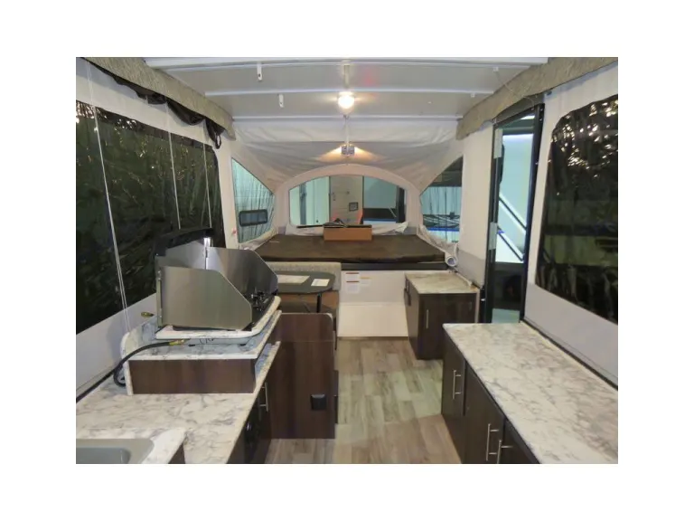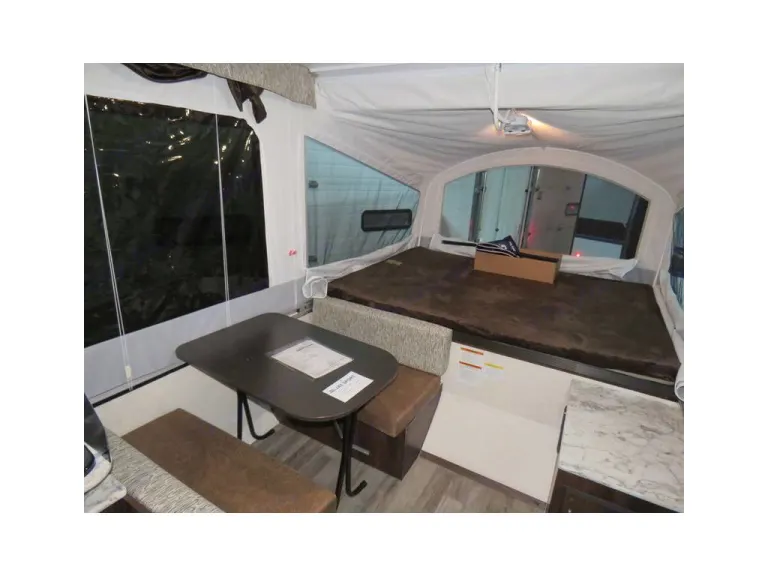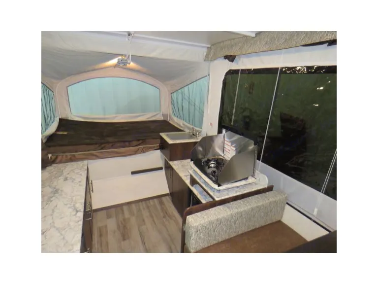 Jayco 2018 Jayco 10 Sport popup camper. Pops out to 20 feet long and features a queen bed and a full size bed. Small dining area that converts to a single bed. Two burner gas stove, propane tank, refrigerator and furnace. 13500 BTU Air conditioner roof air (not shown) Interior lights and on board battery. Weighs just 1500 lbs. Light and easy to tow.