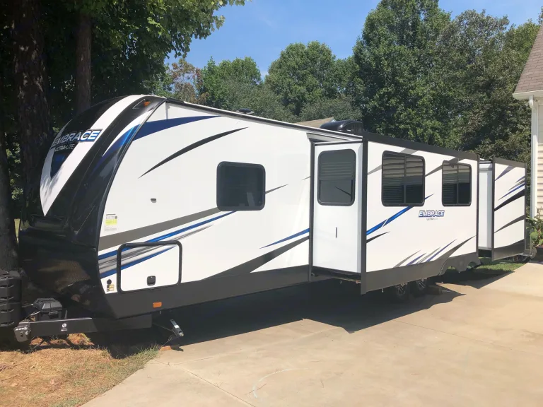 Coca Cola 600 Nascar Race and Charlotte Roval Race....Campsite Included in price!! We have a spot reserved for each even at the Camping World Resort RV park. Full Hookups!Brand New 2020 Cruiser Embrace EL310 camper is more than ready for your next camping trip.If you are looking to enjoy the outdoors or need extra space at your home for family during the holidays, we can help. .Our trailer is loaded with tons of extras! Sleeps 9 comfortably. Master bedroom with King bed. Queen pull-out sofa, 2 twin sized bunk beds,King-sized folding futon in the rear bunk house and a dinette that folds out to a full sized bed. 2 huge power slide outs (living/ dinette area and rear bunkhouse).This camper is equipped with a full kitchen which includes a microwave, spacious refrigerator and freezer, 3 burner cook top, oven, sink, pantry and plenty of counter space. It also has an amazing outdoor kitchen complete with an additional refrigerator, outdoor sink, 2 burner cook top, LP grill hook ups and tons of cabinets and counter space.Huge bathroom with large shower, vanity, tons of storage and an entry/exit door. Bathroom also has a skylight above the shower to provide more headroom.Outside you will find a huge power awning equipped with LED lighting. There are outdoor speakers (bluetooth capable), TV hookups and tons of equipment to make your camping experience the Best!. The camper weighs 8,000lbs. We will gladly tow and set up/tear down camper for your convenience. Local trips are a $25 delivery/ set up charge. Locations greater than 50 miles away will require the $1 per mile delivery fee.-Additional features: