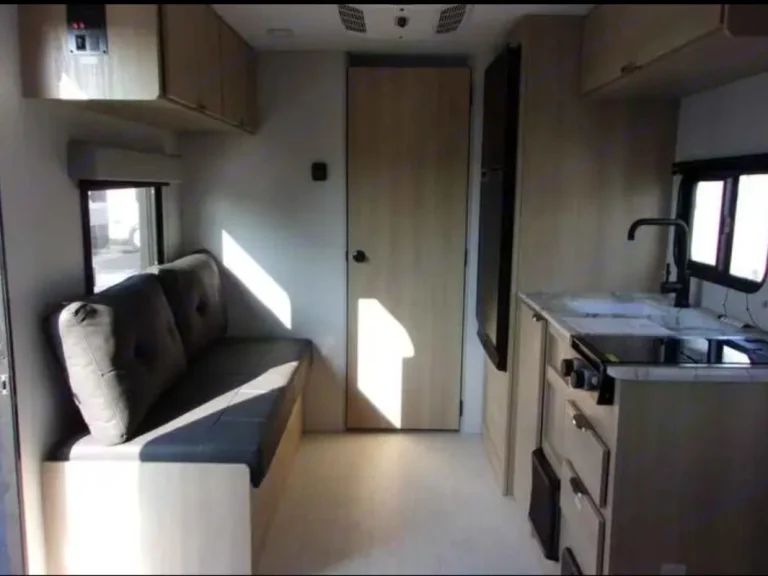 This camper also has a gas fireplace in the kitchen if you just wanted to sit on the couch with a little fire scene.
