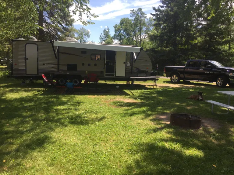 2017 Grey Wolf bunk house! Sleeps up to 10, Full kitchen, outdoor shower, outside entrance to the bathroom, queen size bed, 2 double bunks, power awning. 1 big slide. Lots of room! Delivery/set up/tear down is available!