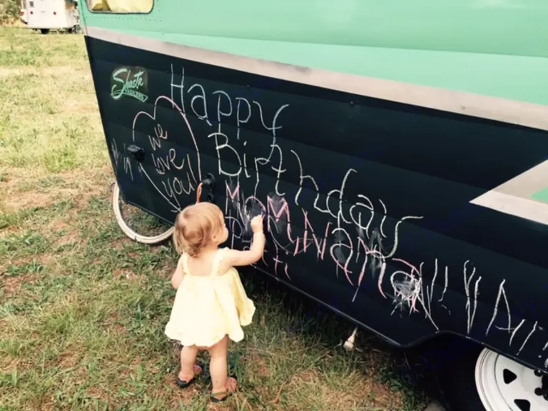 Always wanted a vintage trailer but wanted to try one first? Well now you can!Amazing 1959 Shasta trailer brought back from the dead for you and others to enjoy.Beautiful birch wood interior, ice box fridge, stove and small oven, bed with cots above for kids and a diner style booth and table.The bottom half of the exterior is chalkboard paint, so the kids can draw while you relax.Keep in mind this is a 1959 trailer, so it does not have AC, bathroom or some of modern amenities that the new trailers have.
