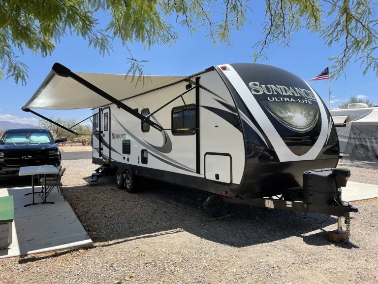 Boondock or RV park in this Super Clean and spacious trailer ready to make vacation memories for you and your family. Perfect for 4 adults with or without kids. Master bedroom has full size queen bed you can actually walk around. Cavernous private bathroom will amaze you with upgraded porcelain commode & bidet and separate shower you can move around in. Kitchen fully stocked with all the utensils needed for meal prep. Enjoy nature or relax inside watching TV - you decide! This luxurious RV has only been used a handful of times and shows like new. Maximum 6 people with 2 in master, 2 on sofa bed and 2 small children on table conversion. No smoking and no pets, please. 6’ table with 4 chairs for outdoor dining available upon request.