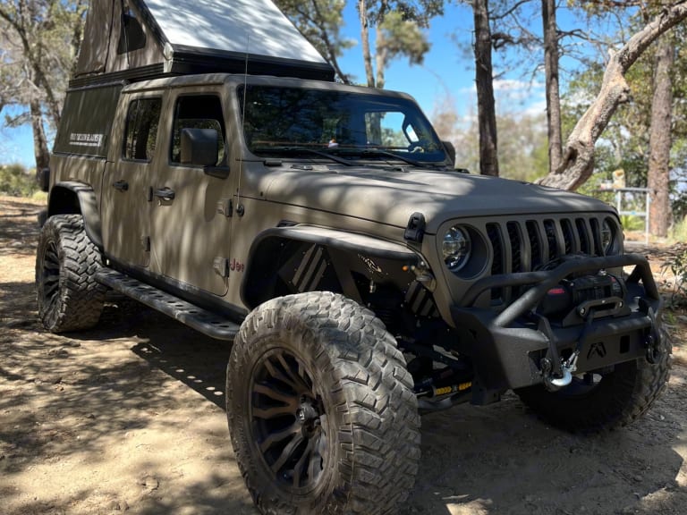Gladys is a 2020 Jeep Gladiator Rubicon with a Go Fast Camper, 37" Nitto Trail Grappler tires, a generous lift, leather seats, Bluetooth connectivity, large LCD display screen, and a host of other amenities to ensure your next overland adventure, camping trip, or getaway is fun, exiting and safe! What's includedGladys comes complimentary with: