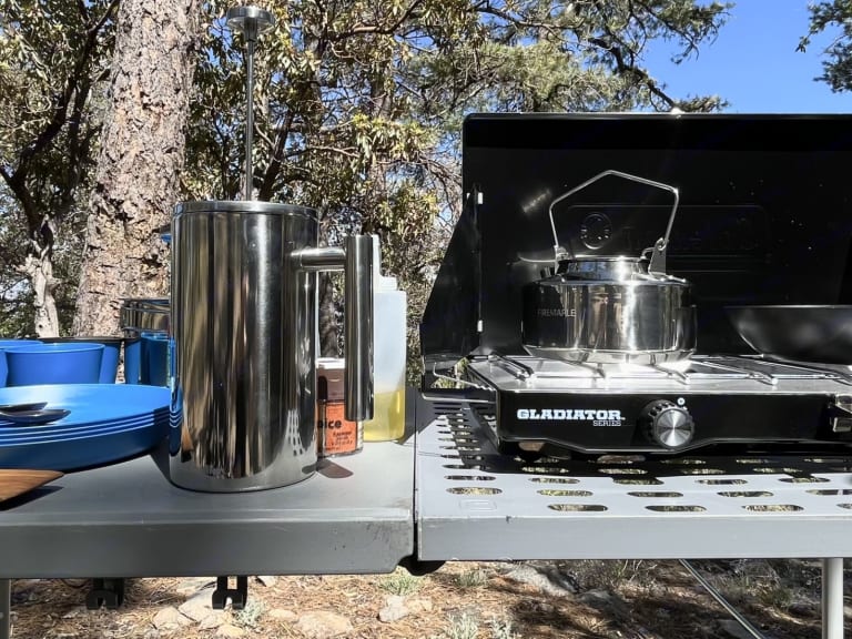 * Cookware (Including Plates, Cups, Utensils, Kettle, and a French Press)