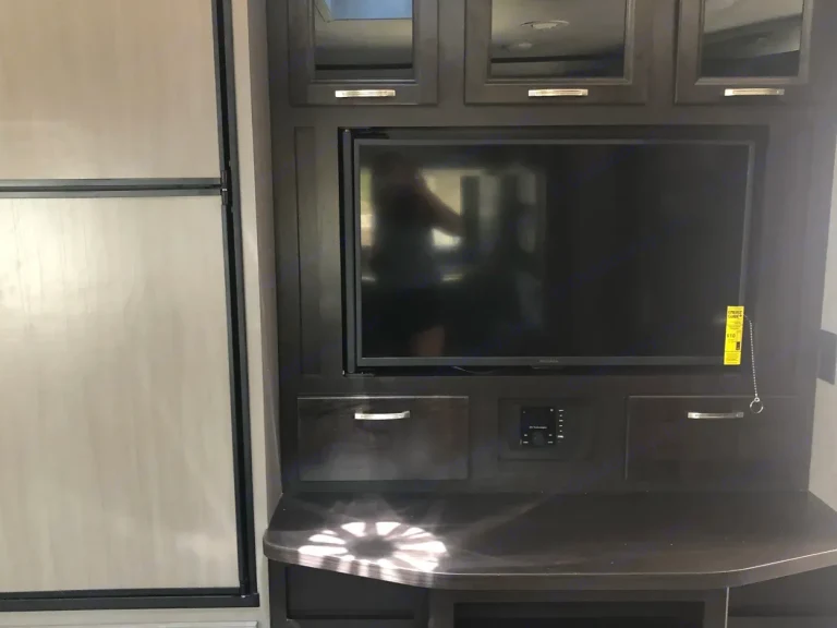 Includes dual zone stereo system with Bluetooth for inside & outside listening, indoor TV for use with RV Antenna or Cable, Includes Blu-ray/DVD & Wi-Fi connectivity.