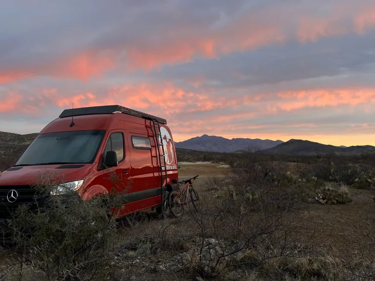 High roof adventure van designed to support your athletic vacation. Perfect for one of the many gravel grinders, ultramarathons or mountain bike races around AZ or beyond this van is equipped with a loft bed, 70qt ARB fridge/freezer, diesel heater, 4x4 and plenty of storage. All ‘house’ electronics are powered by 400w of solar and 200aHr batteries.