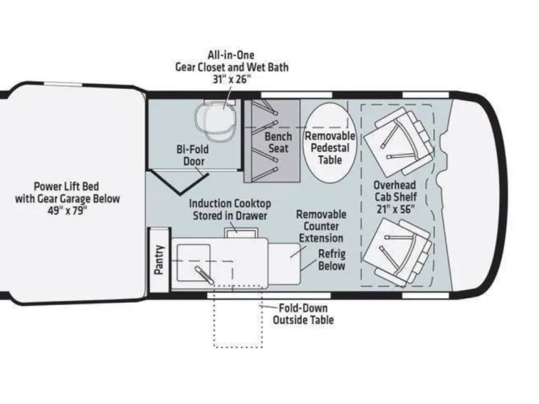 2-burner outdoor grill (optional; propane charge applies) – Franz has a single burner induction cooktop as wellOther things to noteOne well-behaved dog may be negotiable with an additional cleaning fee. Please do not leave your pet unattended in the vehicle at any time.Absolutely no smoking or vaping in the vehicle. Smoking will incur a $500 cleaning fee.The Franz will have a full tank of Diesel when you pick up; it must be returned with a full tank of Diesel, or a charge of $4.50/gallon will be charged.The Franz must be returned by 5pm unless a different arrangement has been made prior to pick up; returns after 5pm will be charged a half day. Returns the following day will be charged a full day (and so on).Vehicle will fully cleaned prior to pickup, per CDC guidelines. Soap and hand sanitizer will be provided for your use on your trip. The rig should be swept clean and cooking supplies washed prior to return. “Lived in” is totally fine, and there is no need to wash the exterior prior to return; overly dirty returns will be charged an extra $100 cleaning fee.The cassette toilet tank must be emptied and rinsed by renter prior to return, or will be subjected to charge of $200.00Jeep trails and off-roading is strictly prohibited, and renter/driver will be responsible for any damaged accrued during such activities. Dirt roads and fire roads are completely permissible!