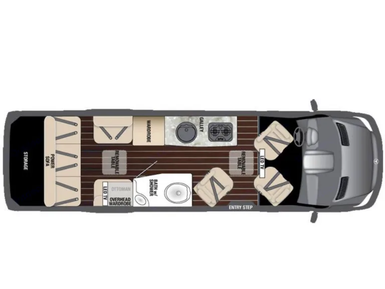 Easy to drive, set up, and enjoy, the Interstate Lounge Wardrobe EXT combined with Mercedes Benz reliability. The coach is Glamping at its finest. Whether you are heading to an event or the beach house, the Lounge Wardrobe EXT is equipped to keep everyone comfortable on the journey. In the Interstate Lounge Wardrobe EXT, the fun does not have to wait to begin until you arrive at your destination. The fun begins the moment you step inside.Two burner stove, kitchen sink, fridge with small freezer, 2 LCD TV’s, WiFi, microwave oven, shower and toilet, oversized automatic King Bed in rear, seats 8 comfortably going down the road. Available bike rack can be added, with capacity to hold 4 bikes. Air conditioning available while in camp sites connected to 30 AMP shore power or by running on board generator. The turbo-diesel Sprinter gets tremendous mileage (avg is about 18/mpg) and handles many driving conditions well. Plenty of available on-board storage is available. The coach is located in Tulsa, OK - delivery, set-up, and pick-up can be accommodated with additional fees - including pick-up and drop off from Tulsa International Airport.What's includedYou’ll have a full tank of diesel, 32 gallons of house water, and a full 14.6 gallon propane tank for hot water, cooking or generator use.Other things to noteTowing/use of hitch receiver is not allowed, except with tow fee. Only pre-approved camping sites are allowed.We will make best efforts to ensure all items are functioning. However, given that items can fail, we make no guarantee of their availability. Especially during busy seasons where there is limited maintenance time for repair. We will inform you if something may not be working prior to pick-up/delivery.No smoking, no pets, no festivals.Any reconciliation costs at the end of the trip (mileage, cleaning fees, fuel, damages, etc.) are subject to 2.95% credit card processing fee in addition to the charges themselves.RV is equipped with GPS tracking device.