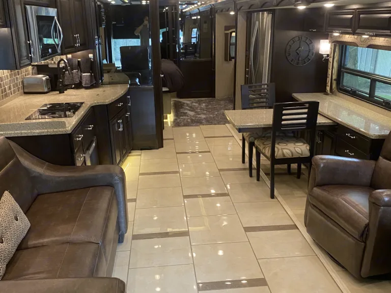 Adrian's RV is beautiful and like a home on wheels. It was beyond comfortable. Although it rained almost every day, we had a great time. The RV came with all the essentials and more. We used the Blackstone grill every day. We loved it!