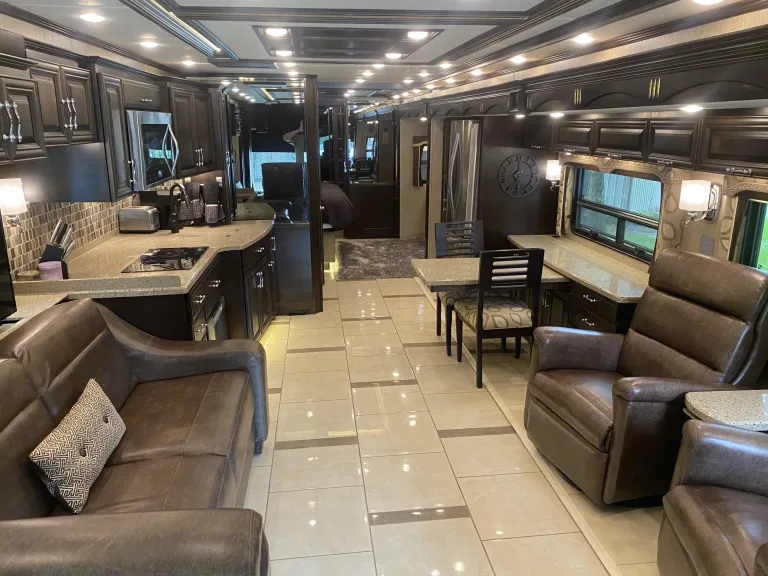 Hit the road in our amazing "Mobile Mansion"! This is the epitome of "Glamping"! "Hoss" is an absolute five-star resort on wheels. The Mountain Aire is among Newmar's top tier private coaches. Dont let the size intimidate you as Newmar built in so many active drivers assist features, it's literally easier and less stress to drive than most vehicles (rear steer "tightest turning radius in its class", steering assist - allows active driver input through the steering wheel to dampen wind and grade change, side mirror cameras, and rear backup cameras. This coach will leave you wanting more! Several hour drives leave you in a state of relaxation and comfort where you arrive not tired or aching from long trips. The best part is wherever you stop you are at home with all the amenities of a five-star resort. Truck stops and travel centers make for a safe and enjoyable pit stop experience. With exterior door locking keypads, and remote key fobs you stay safe with peace of mind while traveling. Newmar also includes a rear escape door in the ensuite allowing easy emergency access. This coach is professionally maintained by the dealer and has new steer tires (08/2024). This is the perfect coach to take to any resort style RV community as it meets the age and type/length requirements. This coach was over $700,000 when purchased. It has many upgrades such as automated day / night shades, heated floors, solid surface counters, Bose theatre system, baseboard floor vacuum built in, half bath for guest, European stainless refrigerator, Wingard automated full-length awnings (remote controlled), exterior basement freezer/ refrigerator, exterior in wall 42" Sony television with sound bar, electric basement storage drawers, Aqua hot instant hot water on demand, in motion satellite, 46" Sony television on scissor lift, four large smart televisions in total, built in washer and dryer, Electronic lighting control panels throughout, convection microwave, dishwasher, new electric cooktop, dual vanities in ensuite bath, cedar lined closet, built in wall safe, cedar bench in oversized shower - larger than most homes, etc. Treat yourself to an amazing vacation experience while traveling in pure luxury. This is not a loud, rattling over the road coach. From the first mile down the road, you will know you're in for a treat! What's included• Includes: exterior chairs, outdoor rugs, propane Blackstone grill, fishing poles, exterior tables, tow vehicle, BluOx, hitch, towels, sheets, pillows, blankets. Kurig coffee machine, toaster, pots and pans, cookware, storage containers, glassware, misc. cooking utensils, misc. beach supplies (beach towels), writing pens and paper, printer/copier, phone chargers (android iphone), Bluetooth driver headset, all paper goods, soaps, cleaning supplies, disposable cups, spices for cooking, and more!RecommendationsThis coach is perfect for winter ski vacations as it is heavy and travels well on snow packed surfaces with anti-lock braking and traction control. Heated floors make the cold weather vacations very comfortable. This coach is also great for tailgating, ocean front resorts, RV resorts, sporting events (football games, auto races), and more! For an additional fee delivery and setup / teardown delivery may be available. Other things to noteThis is a NO SMOKING indoors coach and a very high fee will be charged if this policy is not upheld by the user. I am a luxury homebuilder and my cleaning crews professionally clean and launder from top to bottom upon each vacation rental. We do appreciate that it is well cared for while using it. You will not have to worry about bedspreads, sheets, towels being professionally cleaned and "new to you" condition while using. We stock multiple high-end linens, towels, and bedding sets.