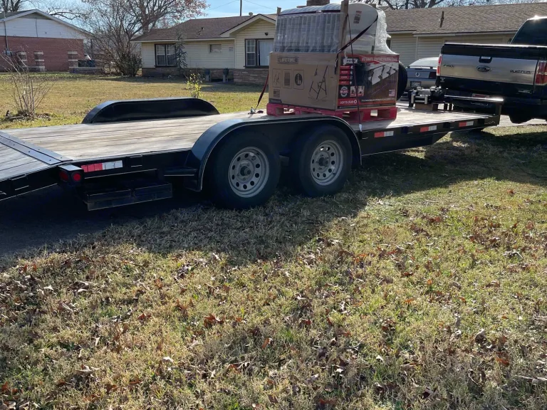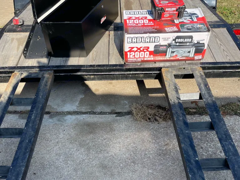 20ft by 83inches, car hauler or utility trailer with electric brakes What's included4 axle straps, 4 regular straps,loading ramps 12000lbs winch, wireless remote, spare tire,