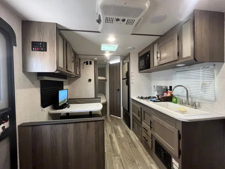 We take care of the work so you can Relax!! Your trailer will be delivered & setup with the AC & fridge turned on. Once you are done, we will pick it up & take care of dumping the tanks. Enjoy the features of this rental such as a refrigerator, stovetop, microwave, bathroom & a Cold AC!! Our staff is available during your stay to answer any questions & take care of any issues.This rental rate Includes delivery/pickup, set-up, propane, basic insurance, basic cleaning, tank flushing & dumping (at on site dump station). Enjoy Off-Season discounts starting at 10% off. Rates are based on a 3 night min. Some 2 night dates are available, call to check your dates. Interested in learning more? Scroll below for more add-on details, rules, insurance coverage, rates and floor plans.