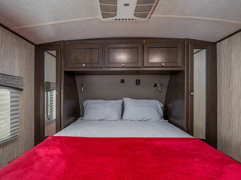 The newest addition to our fleet, this sleek but spacious Sundance RV features a super slide out and bedroom slide out, two outside doors, and sleeps six guests between a master bedroom with a queen bed, a separate room with two bunk beds, and a pullout sofa. It additionally comes equipped with two bathrooms, an inside stove and kitchen counter, a smart TV, Keurig, and more.Cleanup, setup, and delivery are all offered at additional cost! And please do not be afraid to contact us with questions for more information. What's includedFresh linens, towels, cookware, kitchenware, smart TVs, Keurig, and toaster.