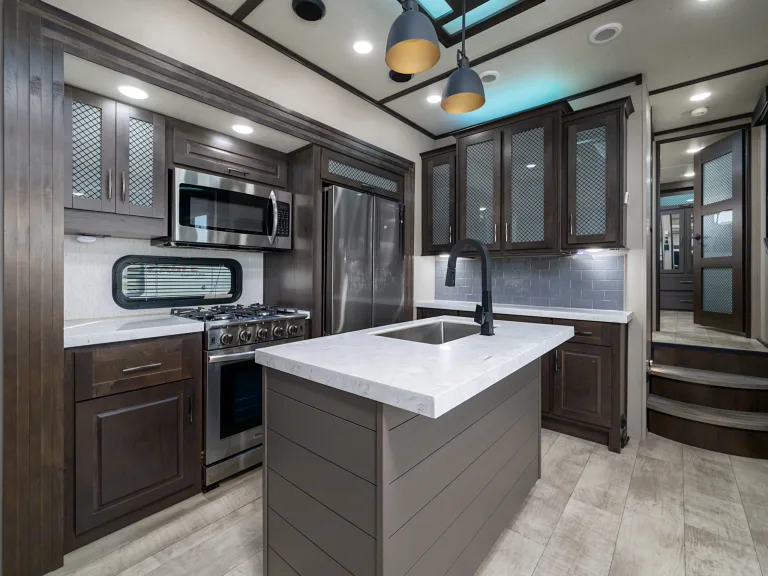 Enjoy white marble-style counters, residential-size appliances, and smart TVs throughout. Sleep up to 8 with 3 king beds + 1 queen, split across two private bedrooms—each with its own full bathroom.