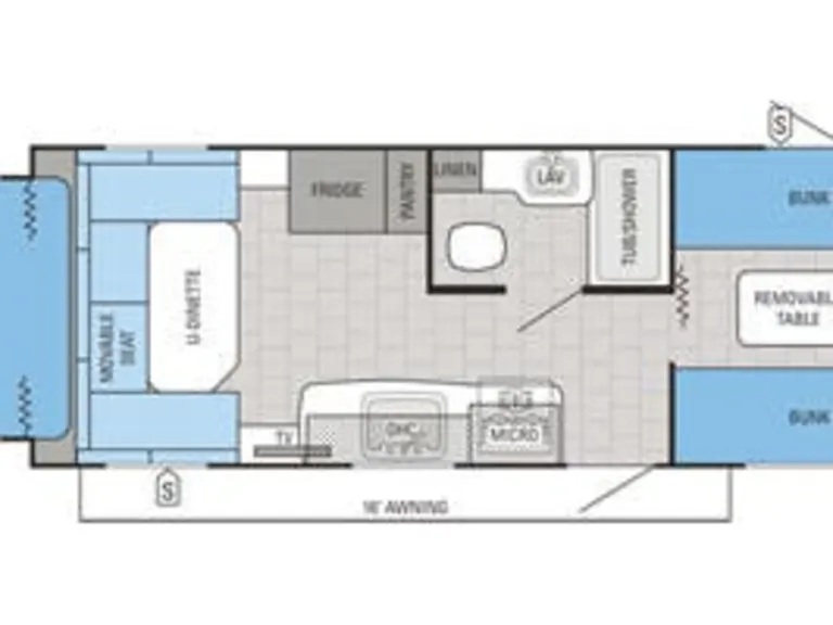 There is also storage under the camper. Not to mention there is heat, hot water, AC and a good sized fridge and freezer. You and your family will love this camper and all it has to offer!!