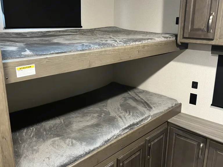 Looking for the perfect RV to make unforgettable family memories? Our Keystone Cougar Half-Ton has everything you need — and more — for a comfortable and adventure-ready getaway. This spacious, family-friendly travel trailer sleeps up to 10 people, making it ideal for large families or group trips.Inside, you’ll find a private master bedroom for some well-earned peace and quiet, a full bathroom with a stand-up shower, and a fully equipped kitchen that includes a refrigerator, stove, microwave, and even a kitchen island for extra prep space. The dining table converts into an additional bed, and the living area features two heated, reclining chairs plus a 42-inch TV for cozy movie nights.Kids will love their own dedicated space — a separate bunkroom with four bunks, giving them room to play, relax, or sleep in their own corner of the RV.And the fun doesn’t stop inside. Outside, enjoy outdoor cooking with a built-in grill and mini fridge, plus a convenient hose attachment for easy clean-up or rinsing off after a day outdoors.Whether you're heading to the mountains, the beach, or the campground, this Keystone Cougar Half-Ton delivers comfort, space, and all the conveniences of home on wheels.