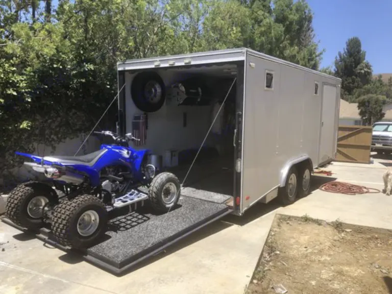 Clean has fuel station water tank spot for outdoor shower e track for proper tie down has 110 outlet can also be used with every hookups are use with generator plenty of storage has extra Spare tire rims and tires were upgraded Has detachable table on the wall that can be moved to outside and attached to wall