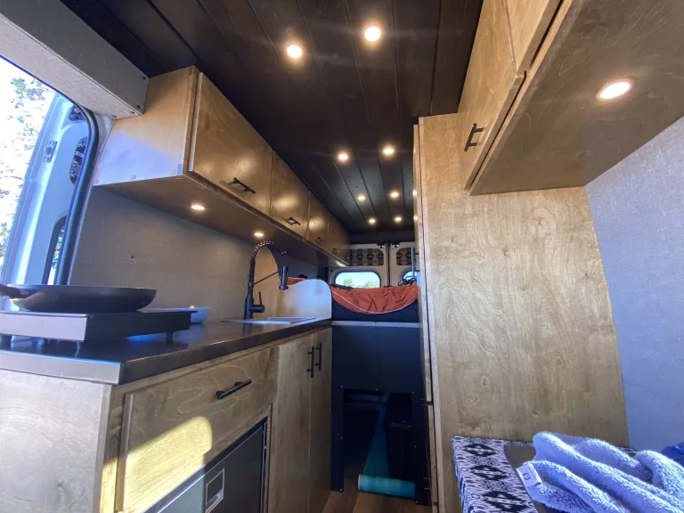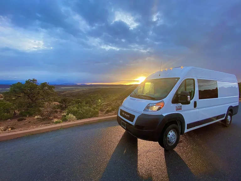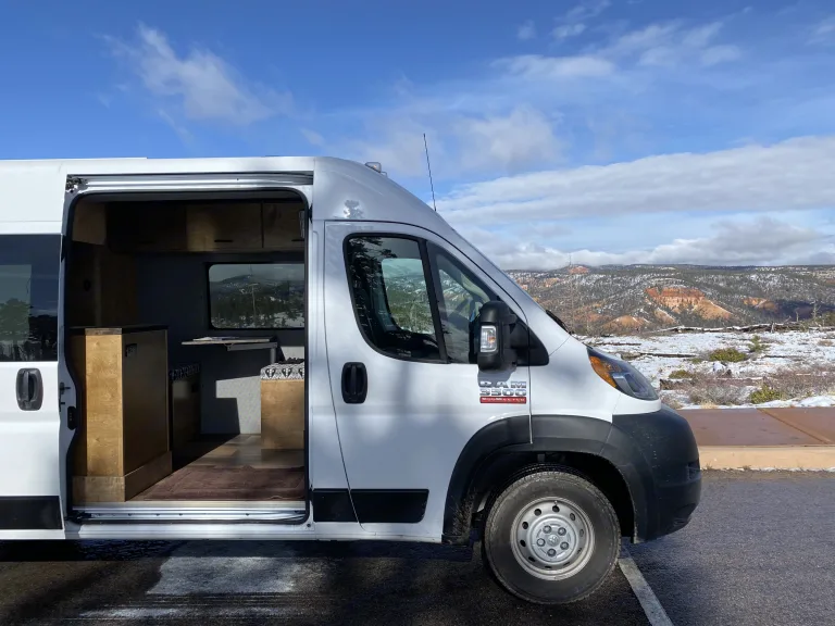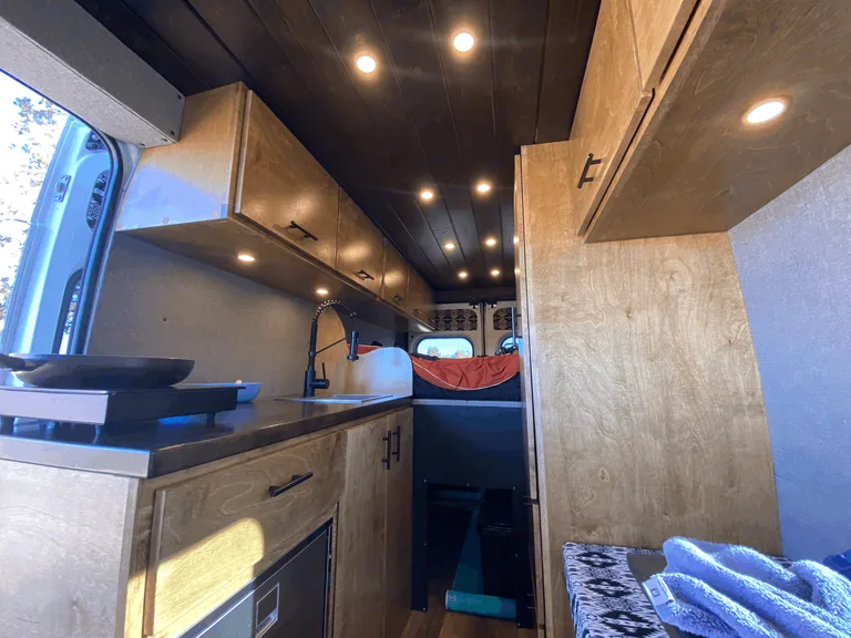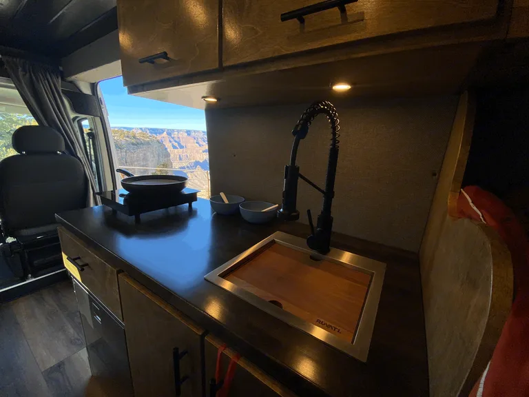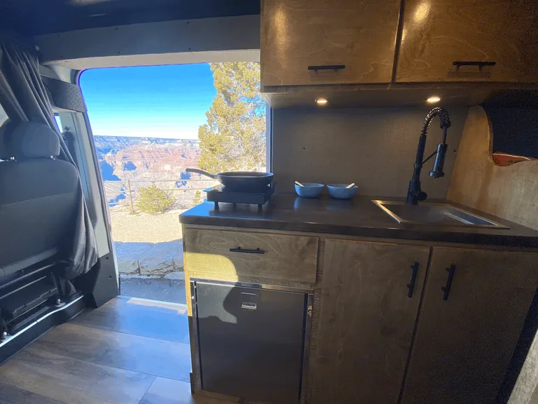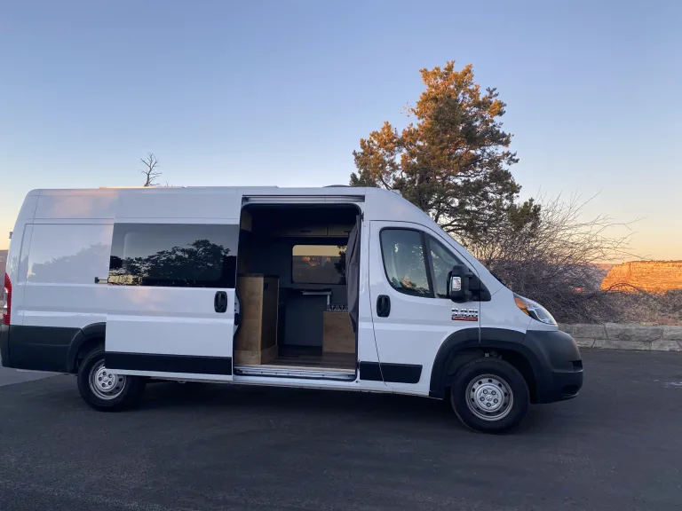 Adventure is out there!What's included2019 Ram Promaster 159" Extended high roof van. High Roof means even a 6'2" person can stand up in the van!! Walls and ceiling are well insulated which means the cool air stays in and the noise stays out!There is AC in the Van while the engine is running. There is a Maxxair dual direction fan that can exhausts the hot air and brings the cool air in while parked. The 400 Watt solar panels attached to a state of the art Mppt solar charge controller keeps the maintenance free Lithium batteries charged. There is also installed a battery Isolator so the vehicles alternator charges the batteries while you are in route to your next campsite. There are 6 USB ports and 6-120v plugs connected to a fully automatic 2,000 Watt inverter so if you need to charge your laptop or anything else, you are good to go.A comfy full-sized platform bed with a 6" memory foam mattress that easily sleeps two will keep you fresh after a day of driving or adventuring! The 70 Liter fridge will keep all of your food and drinks icy cold your entire trip without the need for ice. It also has a small freezer compartment for your favorite frozen treats. There are 2-5 gallon tanks of clean water and a grey water tank under the sink for easy access. There is an electric induction stove top and cookware in the van that run off the batteries.Two bench seats and a table with a window view are great for dining or working. There is ample storage including a hanging closet and a garage for bikes and other outdoor gear! With upper cabinets stretching to the rear of the van on both sides. There is ample storage for dry food, clothes, gear, and anything else you may need on your trip.Provided for free with the rental: Plates, Cups, Bowls, Silverware, Pot, Pan, Soap and Sponge, Spatula, cutting board, Step Stool, Trash bags, Broom and dustpan, Rug, Leveling Ramps, Fresh Water, First Aid Kit, Jumper Cables, and all of the instructions needed to have a memorable trip.The pick up and drop off time is not set in stone. The rental runs on a 24 hour clock, if you pick up the vehicle at 2:00pm it will need to be retuned by 2:00pm on drop off day. Any additional time added will be billed to the customer at $30 per hour (10 minutes late begins the hour). Please respect my time and coordinate with me pick up and drop off, I am more than reasonable with advance notice.Additional: