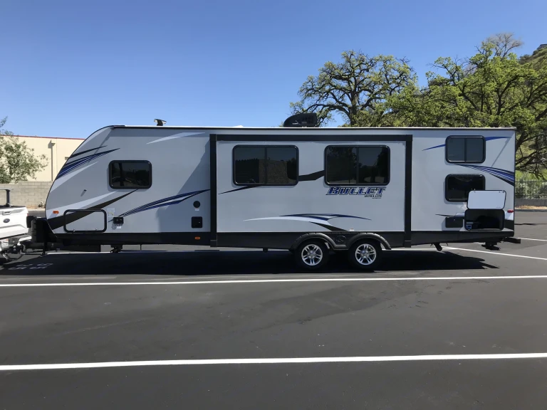 Brand NEW 33'9" Keystone Bullet 290Bhswe Travel Trailer is an ultra-light coach with a luxurious look and feel, an abundance of practical features, innovative floorplan, and unrivaled towability. The light interior makes you feel at home rather than in a dark cave like other RVs. There is a large slide out with dinette and sofa providing plenty of room to lounge indoors with the AC or heater. The full bathroom has a separate entrance from outside so you do not need to walk through the trailer to rinse off or take a pit stop. The shower has plenty of room and has a small tub to bathe the little ones. Full kitchen with oven, 3 burner stove top, microwave, fridge, freezer and a large sink. The outdoor kitchenette contains a stove top and mini fridge making cooking outside easy and access to beverages super convenient, all under a 20 ft awning.We are happy to deliver to your front door for a fee. No tow vehicle, no problem, we even offer delivery and setup at your campsite, saving you time and hassle. Or you can pickup directly from our convenient storage yard in Valencia. If you need a tow vehicle, ask about our 2019 Ram 1500 4X4 Limited.We will give you a thorough walk through and demonstration of all features and make sure your personal vehicle is equipped properly to tow this trailer.We will be available throughout your whole travel experience to answer any questions or address any concerns.To better tailor the RV rental to your specific needs and price, we have multiple “Inside” packages to choose from. So while you are booking your reservation, please select one “Inside” package or your reservation will not be complete.We offer 4 different “Inside” packages from “Bare Bones” to “The Vacation Home”! It’s all up to you.Option 1 – “Bare Bones” – No Additional Charge – If you’re picky like us and want to bring all your own gear then this package is for you. The RV is provided empty, “almost” as if you just pulled it off the lot. (This package does include everything needed to operate the trailer: Hoses, electrical, adapters, chocks, leveling blocks, level, drill, propane, broom and RV toilet paper.) Everything else is left up to you.Option 2 – “The Necessities” – $50 add on – If you don’t want to stress the small details but you do want your own pillow and favorite sheets and blankets then go with this one. It includes; basic cookware, basic cooking utensils, basic dishes, silverware, coffee maker, kettle, coffee filters, cutting board, dish soap, sponge, trash bags, dish towels, hand towels and indoor/outdoor rugs along with some other miscellaneous necessities.Option 3 – “Camper Ready” - $125 add on – In addition to “The Necessities” we add; Propane BBQ, BBQ tools, cards & board games, complete basic bedding for up to 4 beds, paper towels, paper plates, napkins, disposable coffee cups, Solo cups, basic bathroom towels, vacuum, hand soap, bath soap, shampoo. And Smores sticks!Option 4 – “The Vacation Home” - $200 add on – This is how we roll! In addition to “Camper Ready” we add; Propane Fire pit (NO Fire Wood Needed, save money and mess… and NO Smoke IN Your Eyes!!), Keurig, upgraded bedding, upgraded bath towels, upgraded cookware and cutlery, additional kitchen supplies including, Ziploc bags, aluminum foil, olive oil, spices, Clorox wipes, outdoor camp blankets, additional bathroom products including; body wash, conditioner, sunscreen, lotion, mosquito repellent bands, Q-Tips and more. You won’t need to worry about forgetting anything with the “The Vacation Home” package.Ask about the toys, games, camping gear, surfboards, rafts, tubes and other outside fun to improve your rental experience. We are a one stop shop and can include everything you need to make your adventure more enjoyable.If you are camping without hookups, we have a generator that can be added during checkout.If you would like to meet and see the trailer in person before booking we will happily schedule a walk through.