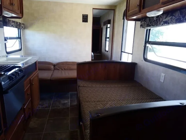 Like new, fully equipped with everything you need but food and beverage.Super clean, in great condition, and tows easy. I will provide the receiver but if you are pulling this RV you will need a seven pin light harness plug, and an electric brake controller.If you chose the delivery option, I will deliver to one of the local sites within 30 miles, setup the RV, and of course dump the tanks for you when you are done with the RV all for the delivery fee.RV has 1 queen, 1 full and 1 bunk. Also a fold down dinette and loveseat.AC refrigerator with much better cooling capability than the standard RV refrigerator, was installed after photos were taken, fishing poles, bedding, towels, lawn chairs, board games, flat screen TV with Hdmi cable, etc. all included.Thanks for looking and happy camping!What's included-Each bed comes with sheets and a pillow.
