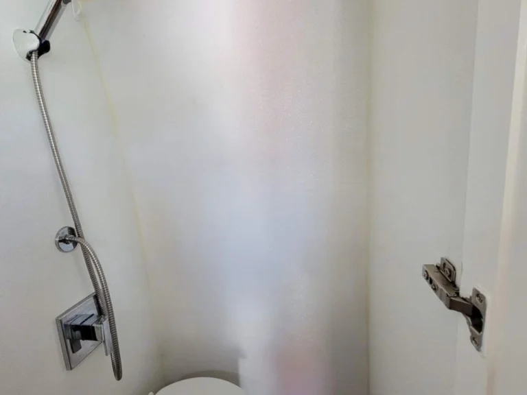 It comes with 11 stage water filter, standing shower, and composting toilet ,electrical water heater, 3 burner stove, a very practical oven for pizza and movie night,