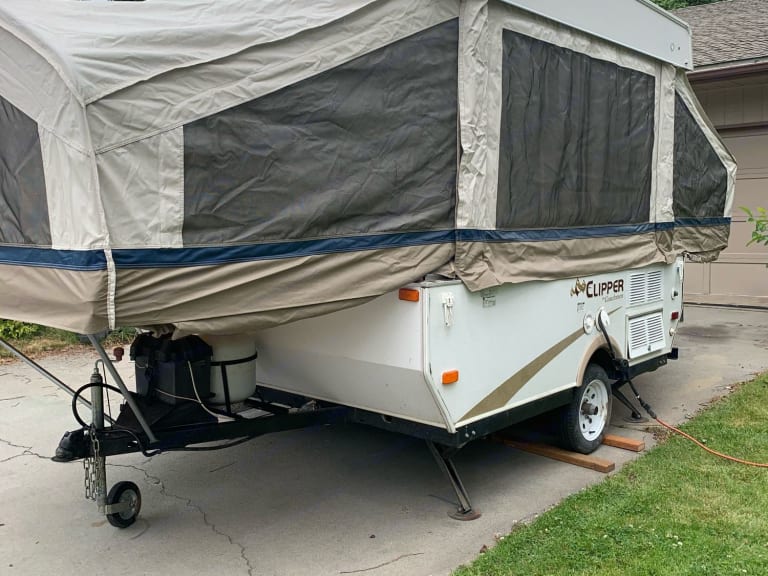 Dreaming of an easier way to camp above ground then take a step inside this Clipper Sport pop-up folding camper. Model 106 Sport offers the convenience of easy towing and easy setup. You will enjoy a full size and a double size insulated tent end bed for sleeping, as well as a dinette for eating, reading, or even sleeping. You can cook meals and wash your dishes as well. What's includedTrailer comes with hose for water drain and an electrical cord to hook up to an outlet.RecommendationsMake sure your tow vehicle can hook up to a 4-pronged outlet.Other things to notePropane is not included. A full tank of propane is available for an extra fee.