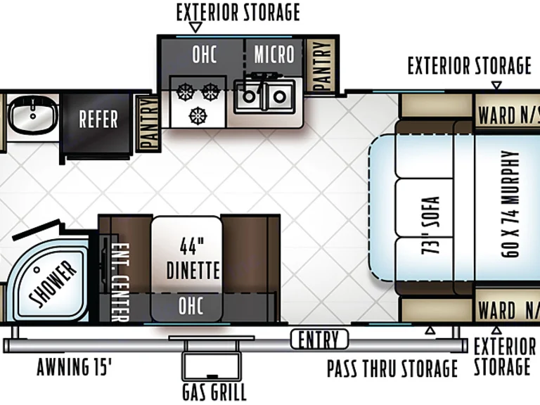 2016 Forest River RV Rockwood Mini Lite 2304KS,Cute travel camper for your getaways. Light weight and easy to tow with smaller pickups and SUV’s. There is a fold down Murphy Bed and side cabinets for additional storage. The Dining area has dual seating and folds down for additional sleeping. The Kitchen has a sink, black appliances- stove, hood, and microwave, and a built in refrigerator. The Bathroom has vanity, wall cabinet & mirror storage, stand up shower.
