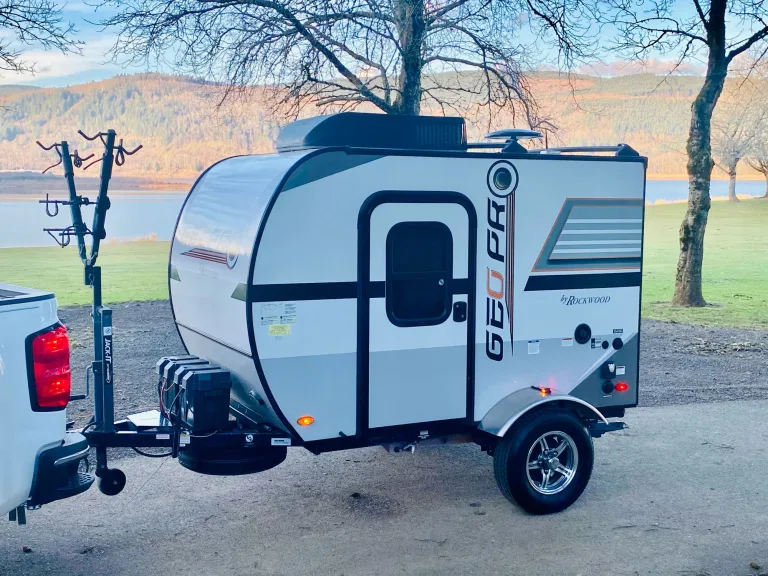 "Joey", the Rockwood Geo Pro 12RK is your small basic trailer that meets all the needs of anybody that has a small vehicle to tow with or just needs a little something to sleep in and enjoys cooking outside. This unit comes with an electric heater, air conditioning, a TV, DVD player, CD player, Bluetooth stereo, WiFi booster, refrigerator, microwave, outside sink and a gas stove. At 1252 lb most any small SUV can pull this unit to the coast, the mountains or across the country. Joey is easy to tow, easy to set-up, has a super-comfy Queen sized memory foam mattress topper, and a built-in bike rack! You can even bring your kayak. Joey is the perfect choice for for solo, couples, or two adults and a child who want to have a fun, comfortable, RV trip without the hassle of a bigger unit. You will also enjoy much better fuel economy. If your previous camping experience involved tenting... Joey will be luxurious and so much easier for you! Joey is best experienced in any campground that has 30amp power and on-site bathroom/shower facilities. But, "dry camping" or "boondocking" (without any hook-ups) is possible for a couple of days with the 20 gallons of water and dual batteries Joey carries. Contact us with any questions and reserve early. Prime summer season dates are filling now. Happy RVing! -JoeWhat's includedTrailer with memory foam mattress, mattress cover, full kitchen (Stove, Microwave, Refrigerator) with a basic cooking set for two, portable propane two burner stove with two propane cartridges, 20 gallons of water, 30 Amp Shore Power cord electric service, Electric Roof Heater, 13,000 BTU A/C, Rear Leveling Jacks, Tongue Jack with wheel, Bike Rack, WIFI Booster, Flat Screen TV, Entertainment Center, DVD Player, CD Player, AM/FM Radio, Bluetooth, Power Inverter. Things to bring: Linens/Blankets/ Pillows, Music CD’s, DVD Movies, Bikes, Your Kayak, Food and Beverages. See our list of add-on items.RecommendationsFrom our Vancouver, WA base your choices for destinations are many! To the North, within a few hours drive, can visit the famed Olympic National Park, the San Juan Islands, Mt. Rainier, and beautiful British Columbia, Canada. Heading East, within an hour's drive is the Columbia Gorge Scenic Area with waterfalls, vistas of the Columbia River, amazing hiking, great towns to explore (Stevenson, Cascade Locks, Hood River, White Salmon), world-class windsurfing & kite surfing, wineries, and Mt. Hood. To the West, within a two hour drive are the many beaches and coastal towns to explore like Oceanside, historic Astoria, Seaside, artist colony Cannon Beach, Manzanita and so many more. We are fortunate to live in the Pacific NW and now with Joey, you can enjoy this outdoor paradise too.Other things to noteWe have just a few basic rules to keep Joey fresh and nice for all our guests.