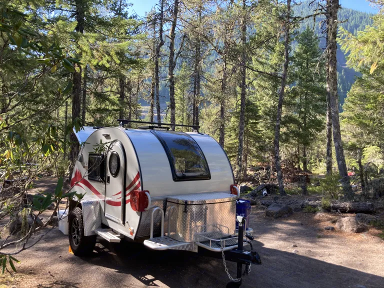 You will fall in love with this little trailer! Be ready for perfect strangers to ask you about this cutie-pie in parking lots, rest stops, gas stations and campgrounds. Inside you’ll find a cozy queen bed, a/c, heater, and bluetooth radio. Clamshell galley kitchen includes microwave, 2 burner propane cooktop, and sink. This rugged trailer can easily go wherever you can. Easy to tow, dry weight 1400 lbs.What's includedThe trailer will come like new, but with an upgrade 8 inch memory foam mattress and a lithium ion battery! Also included is a full 5 gal tank of propane, power cord with surge protector and adapter, fresh water hose, wheel locks and levelers. You will need to supply your own bedding and cooking gear. Solar panel keeps battery charged if in full sun.