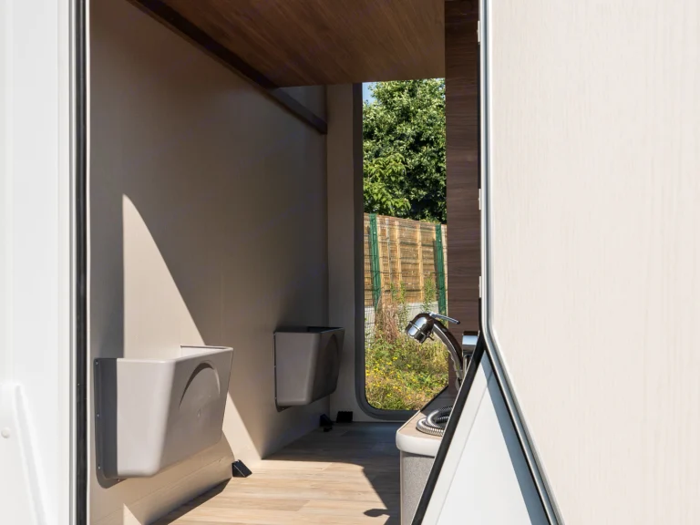 Un salon face-face extra-large avec deux grandes banquettes pour accueillir jusqu’à 7 personnes (189 cm pour la banquette de gauche). La large table est repliable et le plateau coulissant pour faciliter la circulation. La très longue baie apporte une agréable lumière toute la journée.