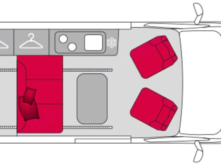 Cuisiner tout équipé est tout à fait possible à bord du CV545BC. Ce van est équipé d’un combiné 2 feux à gaz et à allumage électrique ainsi que d'un évier. Cette fonctionnalité rend le nettoyage très facile. Vous pourrez garder tous vos aliments au frais avec le réfrigérateur de 51 L à compression. Côté rangement, cette cuisine est équipée de 3 grands tiroirs et d’un placard. Une prise 220 V installée au-dessus du plan de travail vous sera également très utile pour recharger vos appareils électriques. Notez toutefois que cette technologie n’est disponible que lorsque votre véhicule est branché sur secteur.La chambre