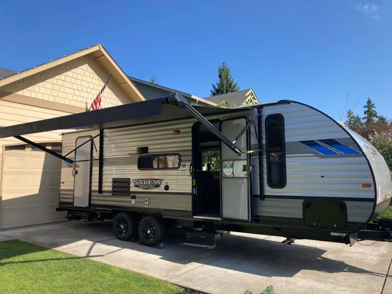 Salem is a brand new 2021 Forest River trailer. Featuring a modern interior, this trailer comes fully loaded with a queen-sized bed, bunk beds (great for sleeping or storage), spacious slide-out dinette, stove, oven, microwave, coffee maker, TV, heating and AC! The bathroom has it's own second exterior door. The 18-foot awning provides an ideal outdoor place to relax as well. Tons of storage underneath makes this ideal for all your adventure gear!What's includedUnfortunately the awning is not available, so we've provided a pop-up canopy for your family to enjoy. Other things to noteSorry, no pets, smoking or festivals. Preferred pick up/drop off time is between 1-2pm.
