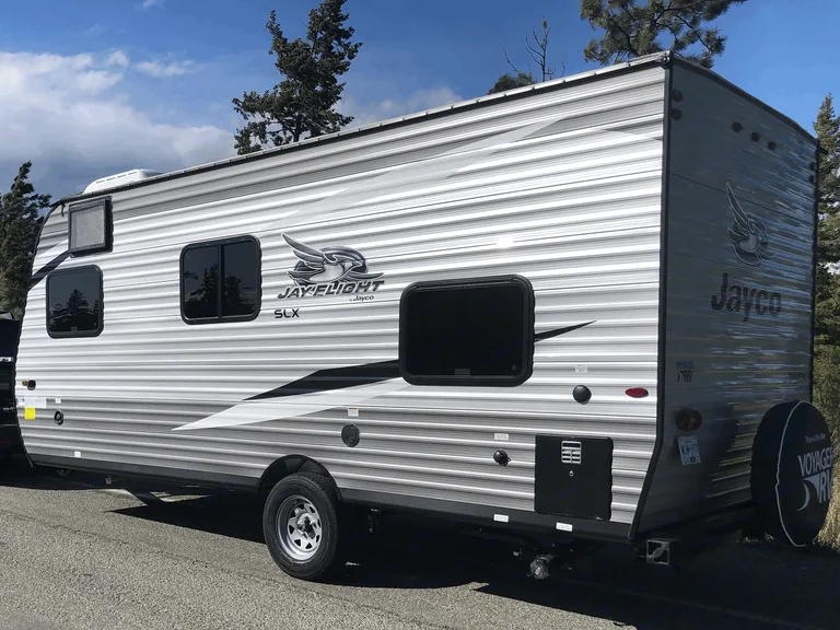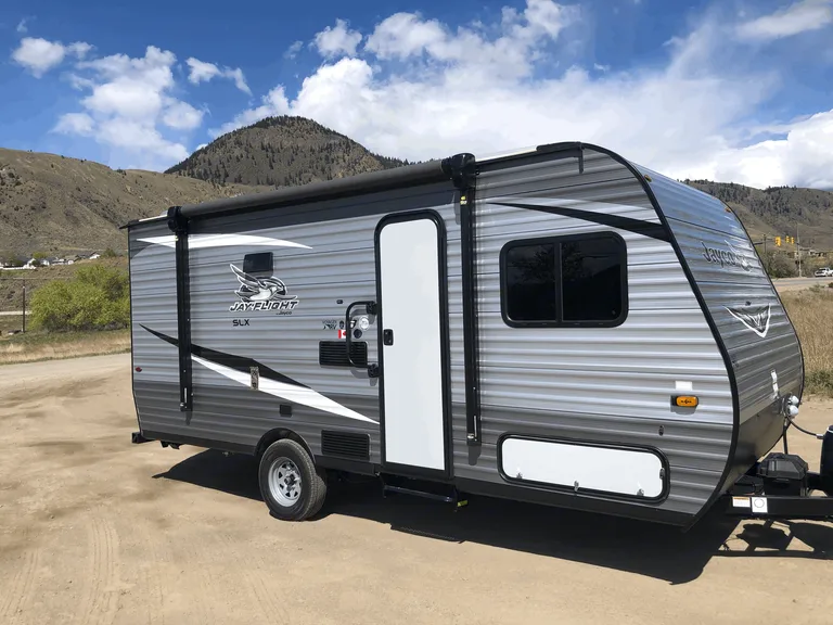 The 2021 Jayco Jay Flight 174 BH is a great family travel trailer that sleeps 5. The main bed is a full queen bed with two bunks and the kitchen table converts to a single sleeper.The trailer is fully equipped with a shower/tub combo, microwave, fridge, AC, stove top, sink and a two person indoor dining area. The trailer has LED lighting, speakers inside and out with a 200 watt solar panel on the roof.*The unloaded Jayco weighs 3075 lbs.*Delivery and pick up service is an additional fee, we offer this within a 120 kms radius but you must be at a fully serviced RV Site for this to be considered. Or dry camping can be arranged as long as water and toilets are not used. This is because you would have no way to drain the water/sewage.*Small pets can be considered for an additional fee.*To use AC, you must be hooked up to a full power site.*We will dump the black/grey water tanks for a fee.What's included*All kitchenwares- plates, bowls, pans, pots, cutlery, cutting boards..etc*Linens are included.*Coleman BBQ (Propane extra)* 2 flashlightsRecommendationsThe North Okanagan is between the Okanagan Valley and the Shuswap, in the interior of British Columbia, stretching from Vernon in the south to Grindrod in the north. Communities amongst the North Okanagan include Armstrong, Cherryville, Coldstream, Enderby, Grindrod, Lumby, Spallumcheen and Vernon. The North Okanagan has a moderate climate producing warm spring weather, hot and sunny summers, mild autumns and temperate winters, and limitless variety of year-round recreational activities to include, hiking & biking trails, skiing, golf courses, swimming and a lazy river in Enderby. Vernon has three spectacular lakes to include the Kalamalka, Okanagan and Swan Lake.Campsites are located throughout the region.Other things to noteNo smoking inside the unit