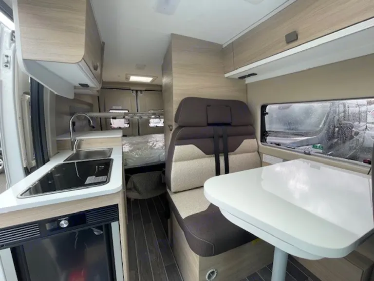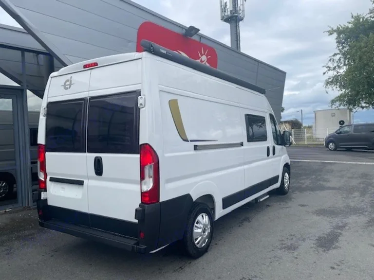 Conçu pour ceux qui souhaitent s’évader du quotidien sans renoncer au confort, le CI Kyros 5 est le compagnon idéal pour des escapades prolongées, en famille comme entre amis. Compact, polyvalent et ingénieusement aménagé, il coche toutes les cases pour vivre la route en toute liberté.Avec ses 4 couchages répartis en deux lits doubles superposés, le CI Kyros 5 s’impose comme l’un des modèles les plus compacts et fonctionnels de sa catégorie. Chaque recoin est pensé pour optimiser l’espace et faciliter votre séjour.Sa kitchenette entièrement équipée — deux plaques de cuisson, un évier, et un grand réfrigérateur avec compartiment congélateur — vous permettra de stocker et préparer aisément les repas de toute votre petite troupe.Le CI Kyros 5 dispose également d’une salle de bain complète avec douche à eau chaude, lavabo et WC chimiques, pour garantir confort et intimité, où que vous soyez.Dans l’espace salon, la banquette, la table avec rallonge et les deux sièges cabine pivotants vous permettront de partager un repas jusqu’à 4 personnes.