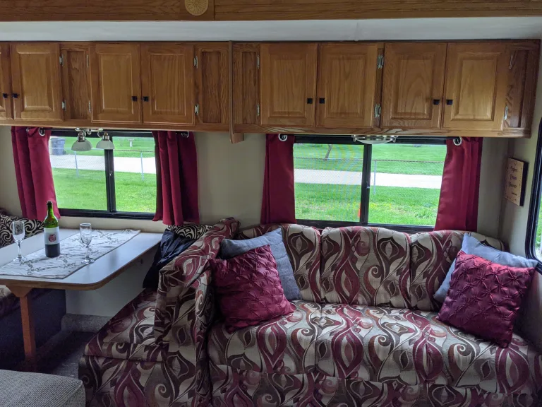 You will feel like you're traveling in your own little cabin in this beautiful, home-like RV. There's plenty of on-board storage and a trailer hitch to bring your toys along with you. The kitchen is generously equipped with the necessary appliances and cooking utensils. Even rainy days won't be so bad with the 42-inch flat-screen tv with video games and DVD player. There are also board games, books, and coloring books on board. At the end of the day, enjoy a hot shower inside and melt into the queen-sized pillow-topped bed. You'll sleep soundly with blackout window coverings and climate control. Bring guests if you like- the sofa folds out and the dinette converts into a sleeping nook.