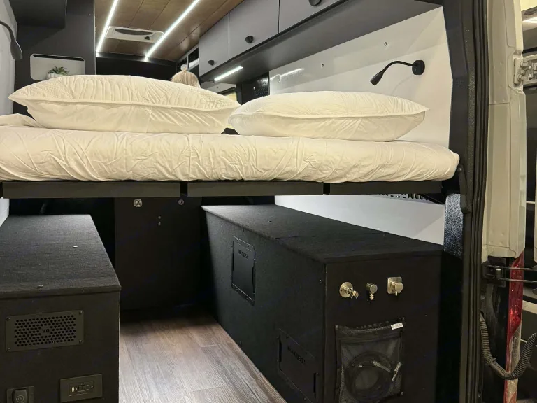 Stay cozy anywhere, anytime with AC, heating, and full climate control onboard.