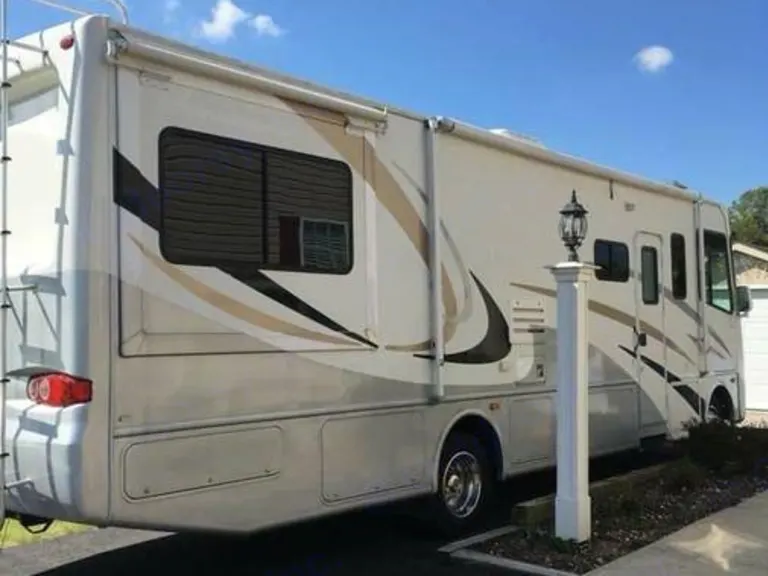 Class A motor home. Two sliders, one forward enlarging the living/dining room and the other in the rear for the Master bedroom with queen size bed. Sleeps six has two smart TVs, CD/DVD. Perfect accommodations for a family of six with a galley kitchen for home-cooked meals, privacy for showers and spacious interior. Inside and outside storage provides ability to bring things along that won’t be underfoot.
